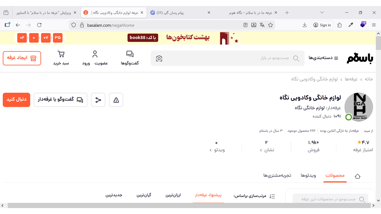 نگاه هوم در پلتفرم باسلام فعال است و همه محصولات و خدمات ما از طریق غرفه نگاه هوم قابل مشاهده و خرید میباشد.